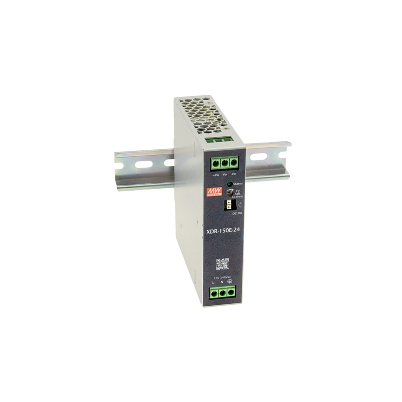 Power supplies in a enclosed housing with 150W and DC-OK signal. These devices conform with EN 55032, EN 55032 Klasse B, EN 61204-3, EN 61010-1, EN 61558-1, EN 61558-2-16, and EN 62368-1. They are suitable for Din rail mounting, as well as they are potected against over voltage, over load (auto recovery), and short circuit. We offer the following types of this Mean Well seriesn: XDR-150E-12, XDR-150E-24, XDR-150E-36, and XDR-150E-48.