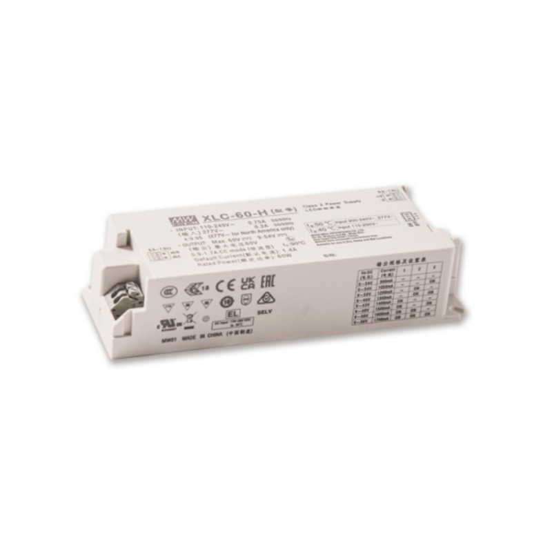 LED drivers in a plastic housing with 60W, a constant voltage, a low no-load power (<0,5W) and a strain relief (XLC-60_-S). These devices have a built-in active PFC function and are protected against overload (auto recovery), overvoltage, overtemperature as well as short circuit. They are suitable for LED lighting applications and comply with EN61347-1, EN61347-2-13, EN55015, EN61000-3-3 as well as EN61000-3-2 class C. We offer the following types of this Mean Well series: XLC-60-12, XLC-60-12-S, XLC-60-24, XLC-60-24-S, XLC-60-48 and XLC-60-48-S.