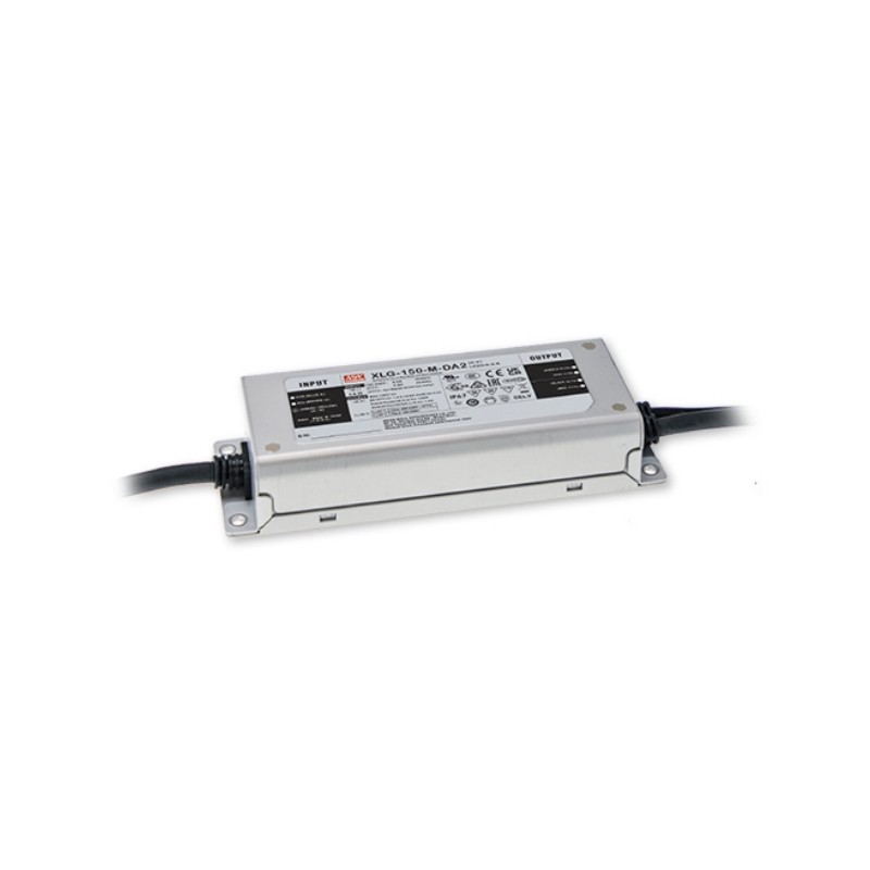 LED drivers in a metal housing (IP67) with 150W, a constant power, an auxiliary power (12V/250mA) and a low no-load power. These devices have a Dali-2 interface and are protected against overvoltage, short circuit as well as overtemperature. They are suitable for LED lighting applications and comply with EN61347-1, EN61347-2-13, EN55015, EN61000-3-2 class C as well as EN61000-3-3. We offer the following types of this Mean Well series: XLG-150-L-DA2-A, XLG-150-M-DA2-A and XLG-150-H-DA2-A.