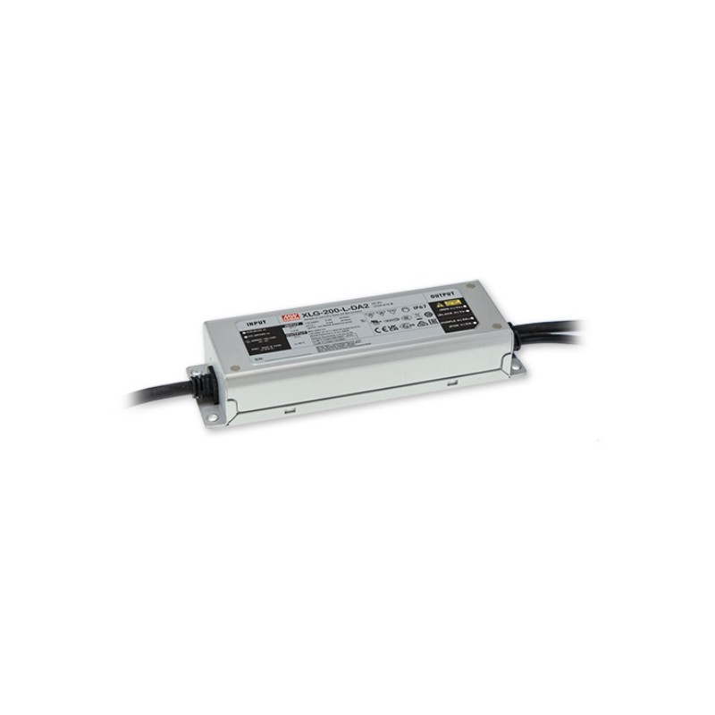 LED drivers in a metal housing (IP67) with 200W, a constant power, a Dali-2 interface and a low no-load power. These devices have a built-in active PFC function and comply with EN61347-1, EN61347-2-13, EN55015, EN61000-3-2 class C as well as EN61000-3-3. They are suitable for LED lighting applications, are dimmable and are protected against short circuit, overtemperature as well as overvoltage. We offer the following types of this Mean Well series: XLG-200-L-DA2 and XLG-200-H-DA2.