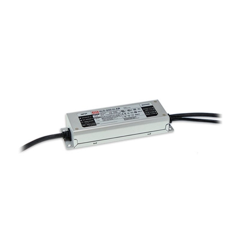 LED drivers in a metal housing (IP67) with 200W, a universal input, a constant current/voltage (XLG-200-_), a constant power (XLG-200-L/H) and a low no-load power. These SELV compliant devices have a built-in active PFC function and are protected against overload (auto recovery), overvoltage, overtemperature, overcurrent as well as short circuot. They are suitable for LED lighting applications, are not dimmable and comply with EN61347-1, EN61347-2-13, EN55015 as well as EN61547. We offer the following types of this Mean Well series: XLG-200-12, XLG-200-24, XLG-200-L and XLG-200-H.