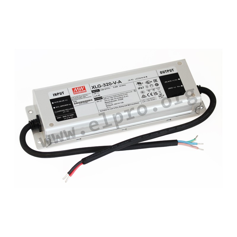 LED drivers in a metal housing (IP67) with 315W, a 3 in 1 dimming function and a constant power output (XLG-320_-AB). These devices have a built-in active PFC function, are suitable for flickerfree CV dimming (XLG-320-48-ABV) and are protected against overvoltage, overcurrent, short circuit as well as overtemperature. They are suitable for LED lighting applications and comply with EN61347-1, EN61347-2-13 as well as EN55015. We offer the following types of this Mean Well series: XLG-320-L-AB, XLG-320-M-AB, XLG-320-H-AB and XLG-320-48-ABV.