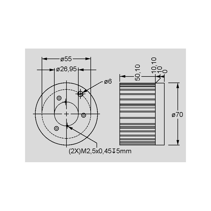 mit 2xM2,5 mounting holes and a Ø6mm cable lead-through