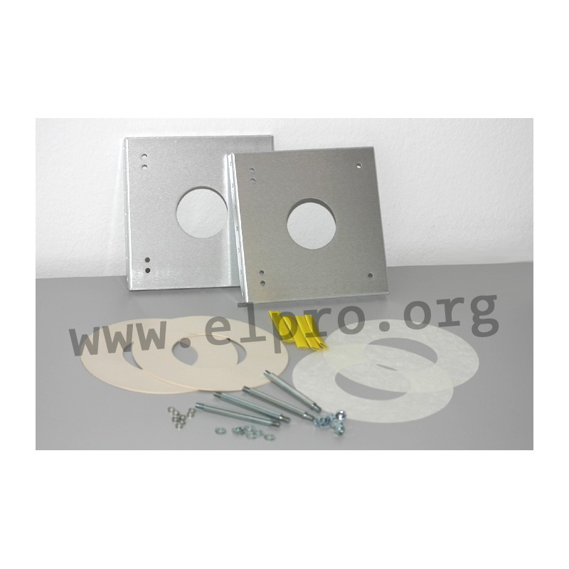 • when assembling, the length of the spacer pin should be adapted to the height of the toroidal transformer. The provided spacer rings can be used for this. When assembled, the flanges should rest upon the front surface of the spaced pins (with spacer ring) without bending considerably, whereby the transformer is crimped and held by the neoprene pads on the inside.