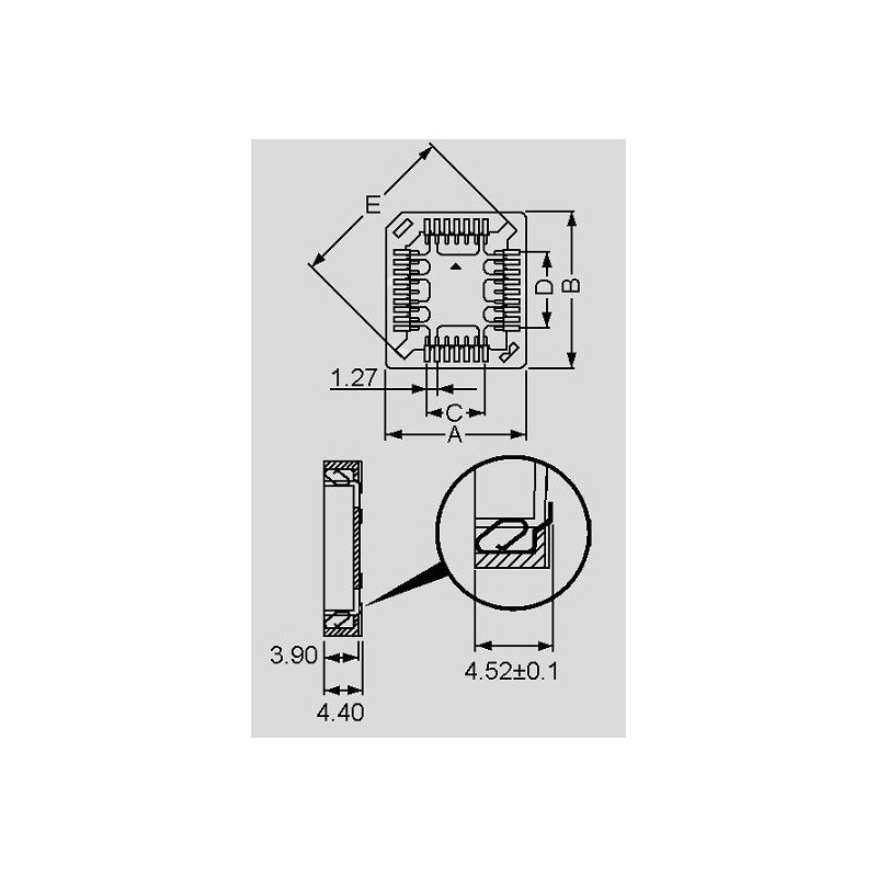 14587 PLCC 68 SMD 082-1-068-0-XT0 082-1-068-0-XT0 SMD PLCC sockets. * PLCC sockets eith SMD terminations (acc. JEDEC MO-047/MO-025)* offering the same PCB-layout as the IC-package* board termination: SMD gull wing* high-temperature-resistant* insulation shell: thermoplast, black (UL94V-0)PLCC52SMD-TH2: thermoplast, brown (UL94V-0)* contact material: CuSn (phosphor bronze)* rated current: 1A* rated voltage: 100VRMS* withstand voltage (1min.): 600VRMS* temperature range: -40...+85°C