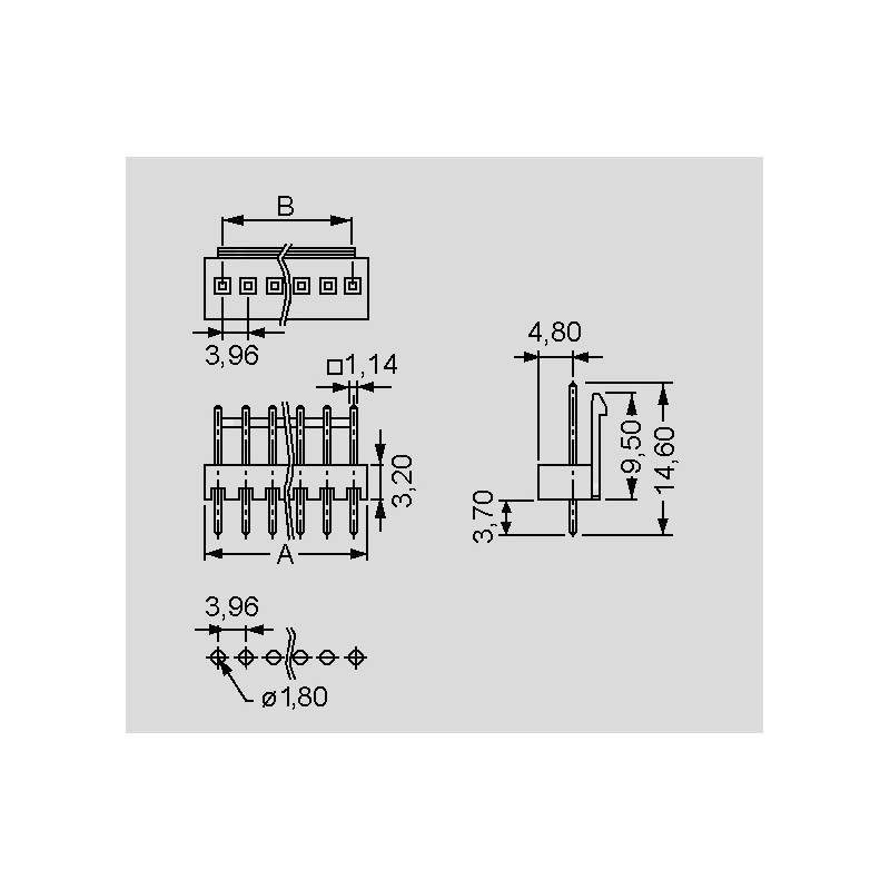 Straight male headers for crimp connectors with tinned brass contacts. These pin strips have an insulator made of polyamide 6.6 (UL94V-0) and have a pitch of 3,96mm. They are suitable for 250VRMS/V DC as well as 5A. We offer the following types of this MPE Garry series: 580-3-002-0-T-BS0, 580-3-003-0-T-BS0, 580-3-004-0-T-BS0, 580-3-005-T-BS0, 580-3-006-0-T-BS0, 580-3-007-0-T-BS0, 580-3-008-0-T-BS0, 580-3-009-0-T-BS0 and 580-3-015-0-T-BS0.