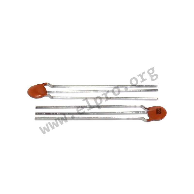 Disc capacitors with 3 contact pins. These caps are suitale for EMI suppression as well as for PCB mounting. We offer the following types of this Murata series: DS306-55Y5S222M50 and DSS306-55Y5S102M100.