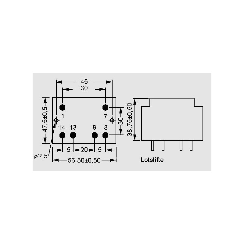 Transformers with an EI54 core and 16VA. These components are suitable for PCB mounting and are not short circuit proof. They comply with temperature resistance class Ta 50/B as well as EN61558-1. We offer the following types of this Myrra series: 44301, 44302, 44303, 44304, 44305, 44306, 44308, 44309, 44310 and 44311.
