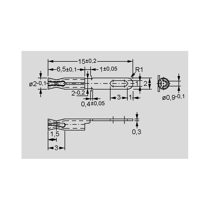* brass (CuZn37)* nickel-plated surface* attaches onto contact pins* for 1mm pinsuitable contact pins