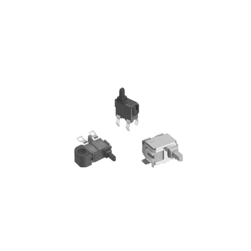 Detector switches with a size of only 3x5,2x6,1mm (ESE11SV1) resp. 6,1x6,4x4,25mm and a service life of at least 50.000 actuation cycles. These switches are suitable for direct PCB mounting (SMD) and have an operating force of max. 350mN. They are single-pole types (SPST) and have a space-saving design. We offer the following types of this Panasonic series: ESE11SV1, ESE11MH1T and ESE11MH2T.