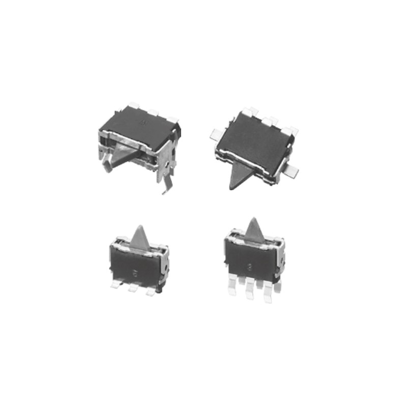 Detector switches (SPDT) in a compact housing with a service life of at least 50.000 cycles. These switches have a high reliability due to sliding mechanical contacts and require an operating force of only 350mN. They are suitable for PCB mounting and have a space-saving design. We offer the following types of this Panasonic series: ESE24MV1T and ESE24MH1T.