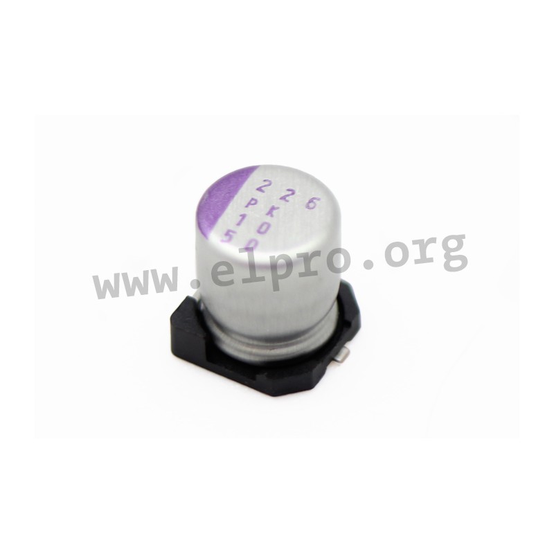 Surface mount OS-CON electrolytic capacitors with a long service lifetime, a high reliability and a high heat resistance. These components use aluminum and a highly conductive polymer to achieve an excellent noise reduction capability and an ideal frequency characteristic.
