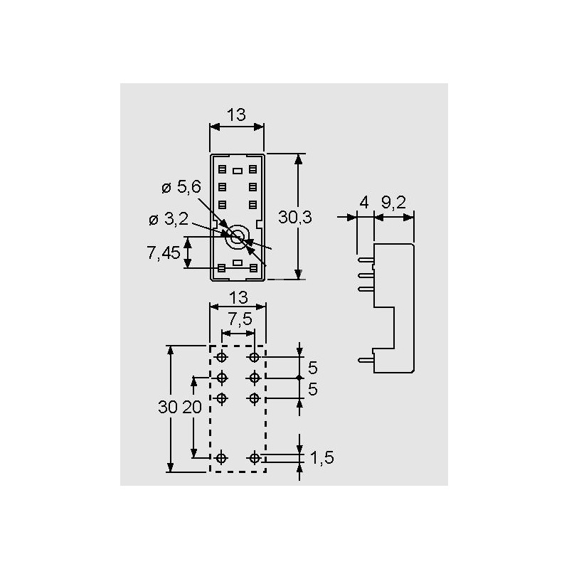 2591395.15.295.15.2PCB sockets and accessories. PCB sockets for 40.52, 40.61, 41.52, 41.61, 44.62 relays, P = 5mm• fits into printed circuit• insulator made from self-extinguishing PPEm (V1)• reeds made of CuSn6• colour: blue