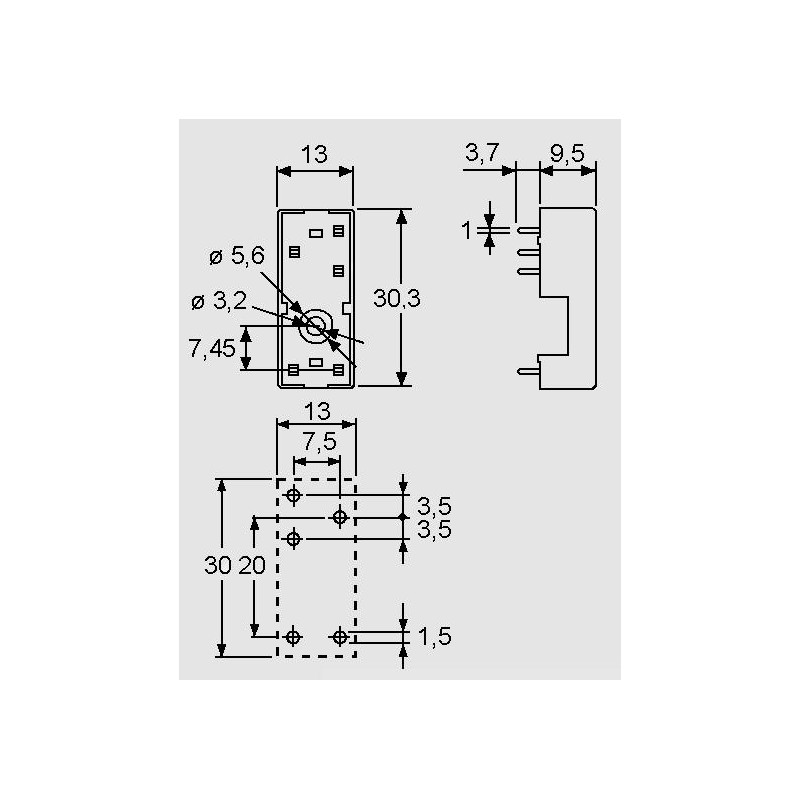 2591495.13.295.13.2PCB sockets and accessories. PCB sockets for 40.31 relays, P = 3.5mm• fits into printed circuit• insulator made from self-extinguishing PPEm (V1)• reeds made of CuSn6• colour: blue