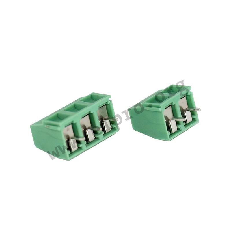 Terminal blocks in green with 17,5A. These screw terminals have a pitch of 5,08mm. They have a side wire entry and are suitable for wave soldering. We offer the following types of this Phoenix Contact series: MKDSN 1,5/2 and MKDSN 1,5/3.