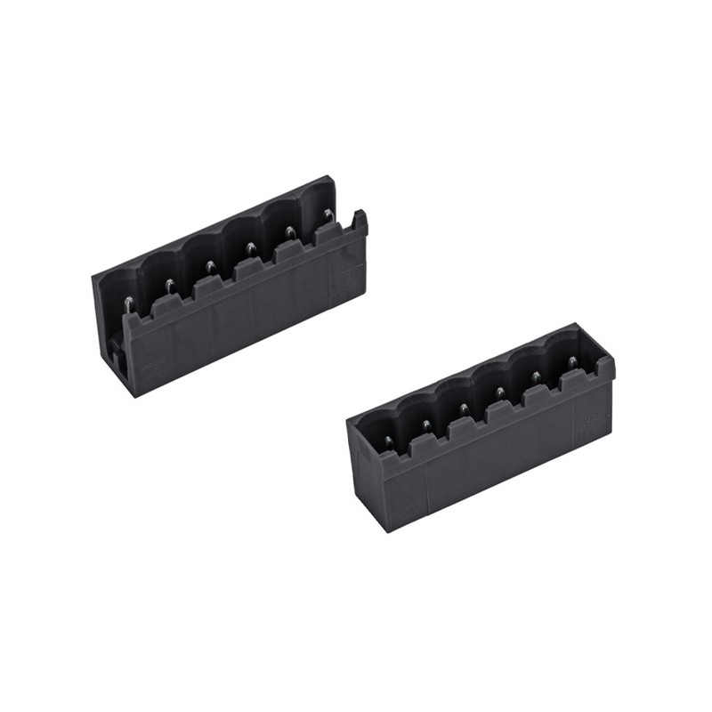 These box headers in vertical plug direction have a pitch of 5mm, and a nominal current of 12A, respectively 16A. We offer various types of this PTR Hartmann series.