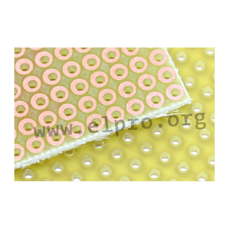 Drilled boards with Cu layer made of laminated paper or epoxy resin glass fabric for building and testing circuit solutions, ideal for small series. These prototyping boards are equipped with earthing strips for sockets, and they are available in diverse types with a variety of characteristics (see technical data of the individual types). We offer diverse types of this Rademacher series.
