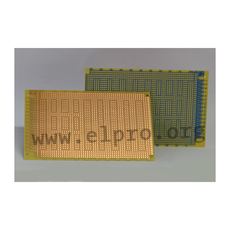 Drilled boards with Cu layer made of laminated paper or epoxy resin glass fabric for building and testing circuit solutions, ideal for small series. These prototyping boards are equipped with earthing strips for sockets, and they are available in diverse types with a variety of characteristics (see technical data of the individual types). We offer diverse types of this Rademacher series.