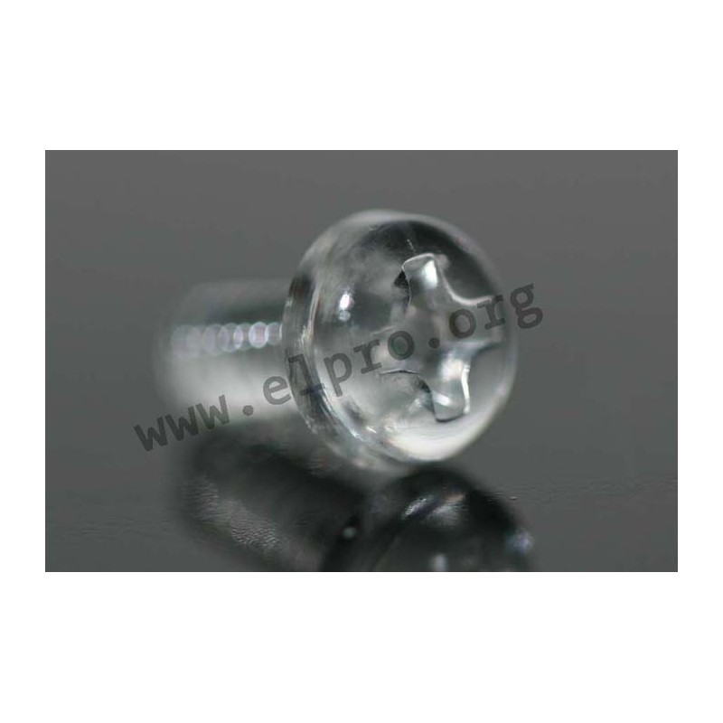 Transparent raised countersunk screws with a cross head and made of polycarbonate, comply with DIN 7985. We offer various types of this series.