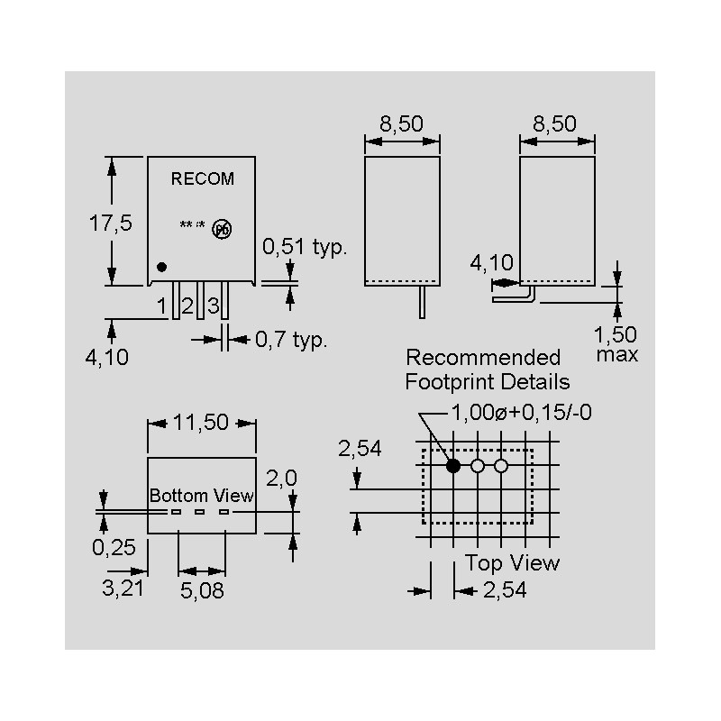 DC/DC converters in a SIL3 housing with 1A output current and maximal output voltage tolerance of ±3% (at 100% load). These devices are suitable for direct PCB mounting without the need for heatsinks. They have short circuit protection (thermal shutdown) and low ripple and noise, making them ideal for use in various applications. Some models come with 90° angled pins (R-78B_-1.0L). The operating temperature range is -40 to +85°C, ensuring reliable performance even under extreme conditions. We offer various types of this Recom series.