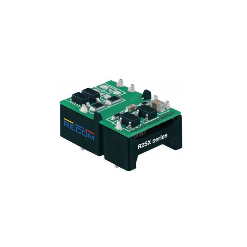 Isolated DC/DC converters in an SMD housing for direct PCB mounting. These devices have an open-frame design and do not require a minimum load. They also comply with EN62368 and EN55032 Class B. We offer the following types of this Recom series: R2SX-053.3-TRAY, R2SX-0505-TRAY, R2SX-0505/H-TRAY, R2SX-2405-TRAY, R2SX-2405/H-TRAY, R2SX-2415-TRAY and R2SX-2424-TRAY.