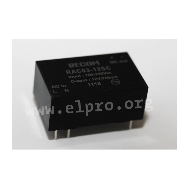 AC/DC converters in an enclosed plastic housing with 3W, a universal input and a low no-load power. These devices are suitable for PCB mounting, are protected against overload, overtemperature as well as short circuit and comply with EN60950-1, EN60335-1, EN55032/14 as well as EN55024. We offer the following types of this Recom series: RAC03-05SC, RAC03-09SC, RAC03-12SC, RAC03-24SC, RAC03-05SC/277 and RAC03-12SC/277.