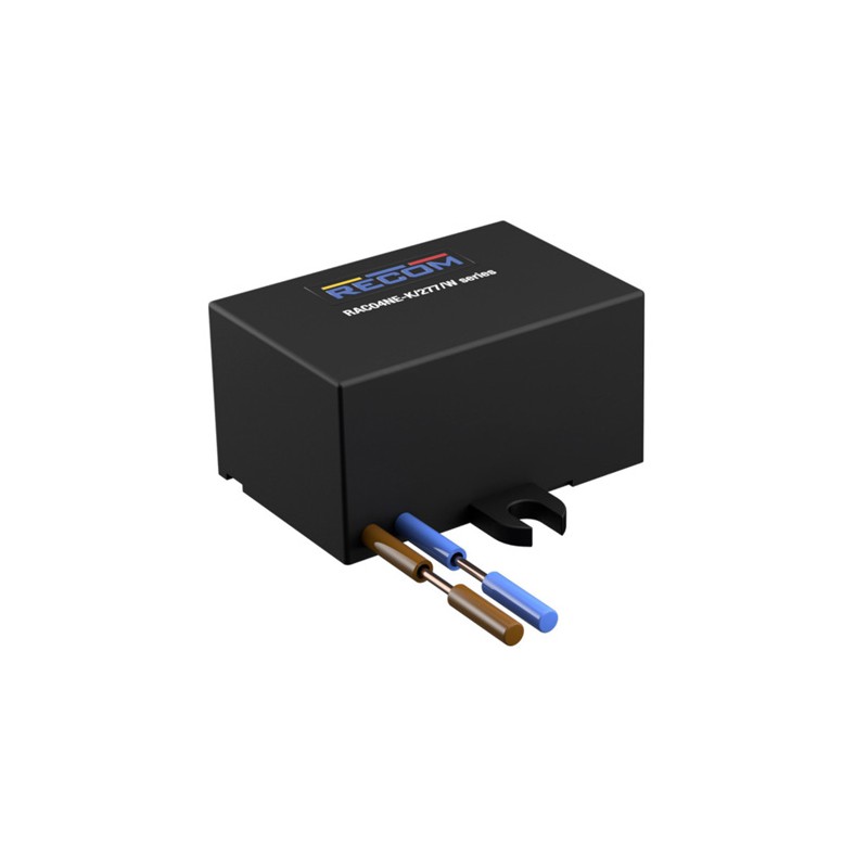 AC/DC power supplies in a closed plastic housing and with 4W. These devices are suitable for industry and ITE , as well as they are suitable for DC application. They conform with EN 60335-1, EN 61558-1, EN 61558-2-16, and EN 62368-1. We offer the following types of this Recom series: RAC04NE-05SK/277/W, RAC04NE-12SK/277/W, and RAC04NE-24SK/277/W.