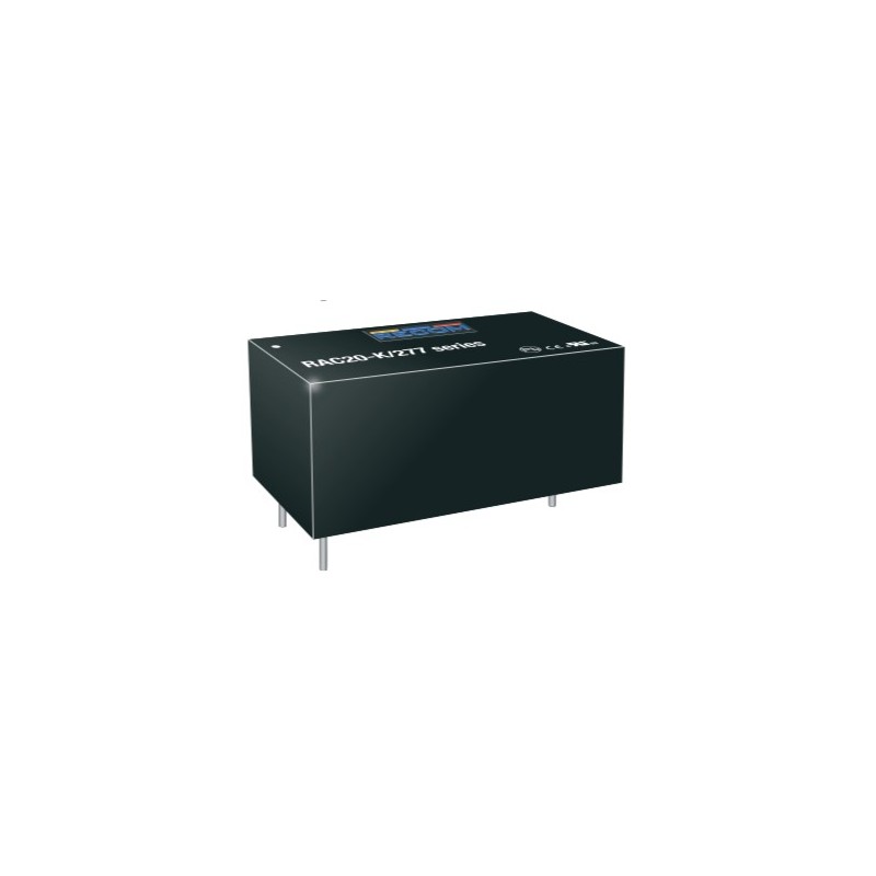 AC/DC converters in a plastic housing with 20W, a universal input, protection class II and a single (RAC20-_SK/277) or dual output (RAC20-_DK/277). These devices are suitable for PCB mounting, are protected against overload, short circuit as well as overvoltage and comply with EN62368-1, EN60335-1, EN61558-1, EN61558-2-16, EN61204-3, EN55032 class B as well as EN55014. We offer the following types of this Recom series: RAC20-05SK/277, RAC20-12SK/277, RAC20-15SK/277, RAC20-24SK/277, RAC20-12DK/277 and RAC20-15DK/277.