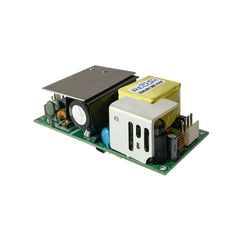 Open frame type switching power supplies with 130W and a universal input. These devices have a built-in EMC filter and are protected against overvoltage, short circuit as well as overload. They are suitable for medical technology applications (2xMOPP) and comply with EN55032 class B as well as EN55035. We offer the following types of this Recom series: RACM130E-12SK/OF, RACM130E-15SK/OF, RACM130E-24SK/OF, RACM130E-36SK/OF and RACM130E-48SK/OF.