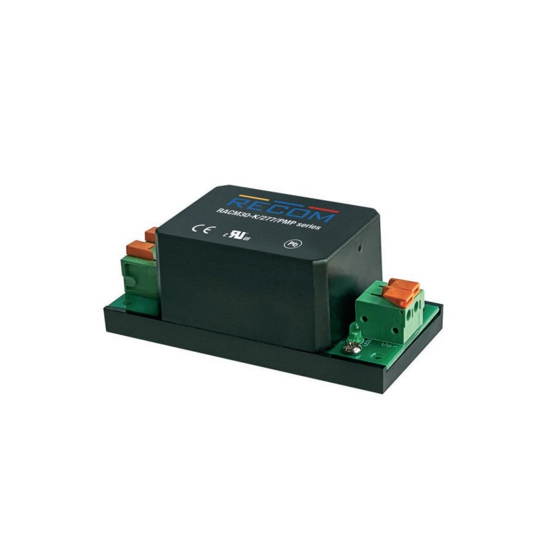 AC/DC converters in an enclosed housing with 30W, protection class II and a universal input. These devices are suitable for medical technology applications as well as for an operating altitude of up to 5000m and are protected against overload, overvoltage as well as short circuit. They have a low no-load power as well as various mounting options and comply with EN62368-1, EN60335-1, EN60601-1, EN61010-1, EN61558-1 as well as EN55032. We offer the various types of this Recom series: RACM30-_/277 for THT mounting, RACM30-_/277/W with a stranded wire connection, RACM30-_/277/PMP with plug-in terminals for DIN rail mounting and RACM30-/277/OF as open frame types as well as the DIN rail clip kit R-DR/CLIP.