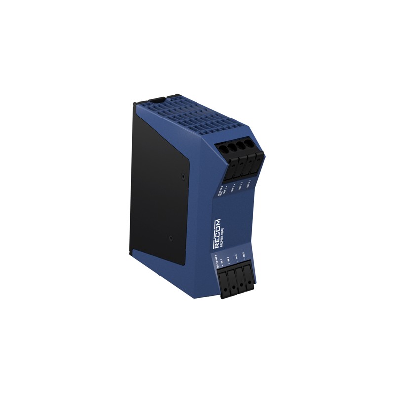 Redundancy modules in an enclosed case with a 2 channel input, a 2 channel output, an output current of up to 40A for direct DIN Rail mounting. These devices support N+1 redundancy systems. We offer the RACPRO1-RD40 type of this Recom series.