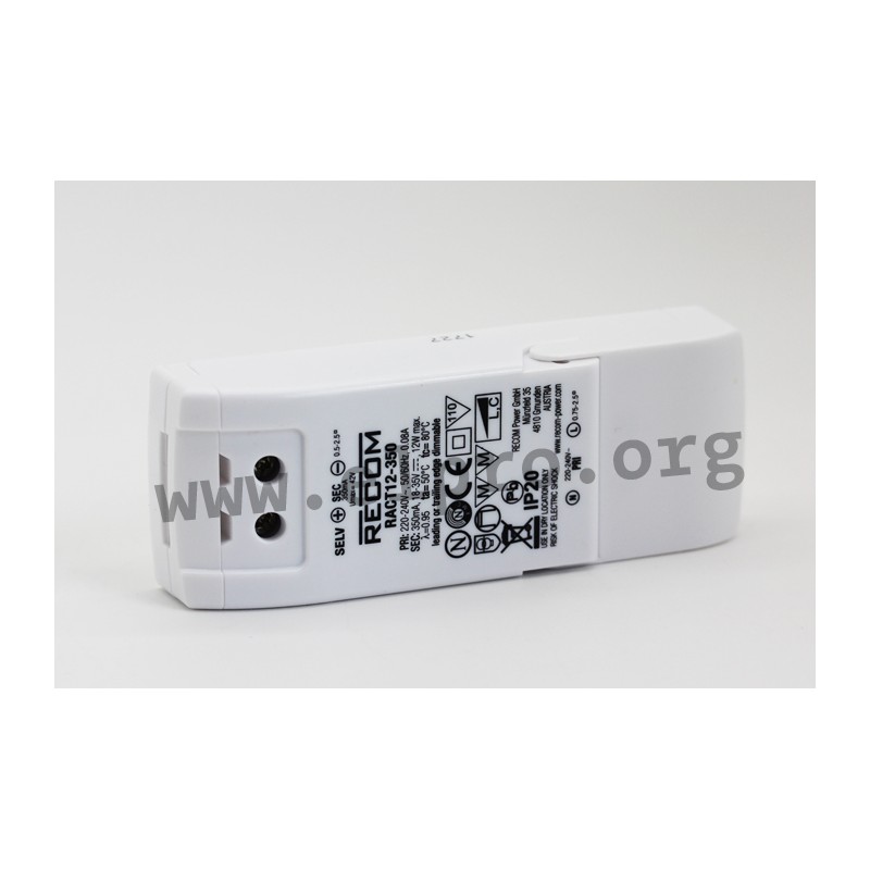 LED drivers in a plastic housing (IP20) with 12W, a constant current, a TRIAC dimmer (phase-cut dimmer), protection class II and a universal input. These devices are suitable for LED lighting applications and are protected against overload, overvoltage as well as short circuit. They have screw terminals and comply with EN55015, EN61347-1, EN61347-2-13, IEC61347-1 as well as IEC61347-2-13. We offer the following types of this Recom series: RACT12-350, RACT12-500 and RACT12-700.