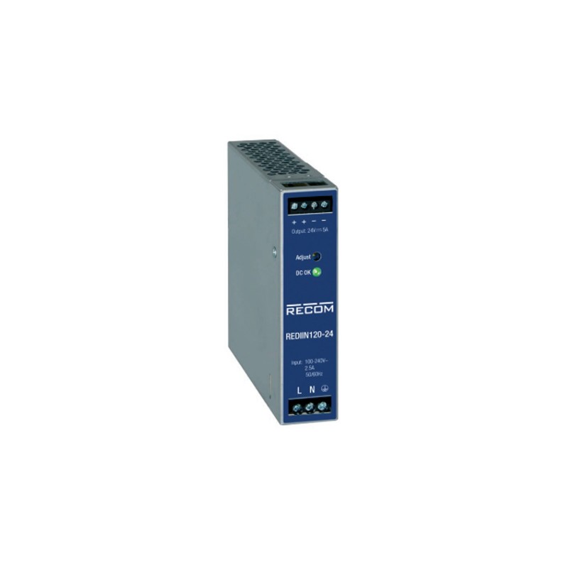 Switching power supplies in a enclosed type with 120W, a programable output voltage, and a low off-load power. These devices are suitable for DIN rail mounting, and are protected against overtemperature, overvoltge, as well as short circuit. They conform with EN 62368-1, UL 62368-1, EN 61010-1, UL 61010-1, EN55032 class B, and EN 61204-3. We offer the following types of this Recom series: REDIIN120-12, REDIIN120-24, and REDIIN120-48.