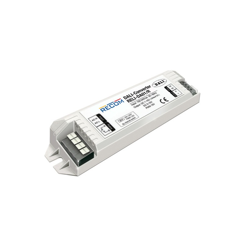 These signal converters with a dali analog interface have a programmable output for PWM / DC 0-10V / DC 1-10 and are protected against overvoltage as well as short circuit. Furthermore they conform with EN55015, EN61347-1, and EN61347-2-13. We offer the RELI-DA01/R type of this Recom Series.