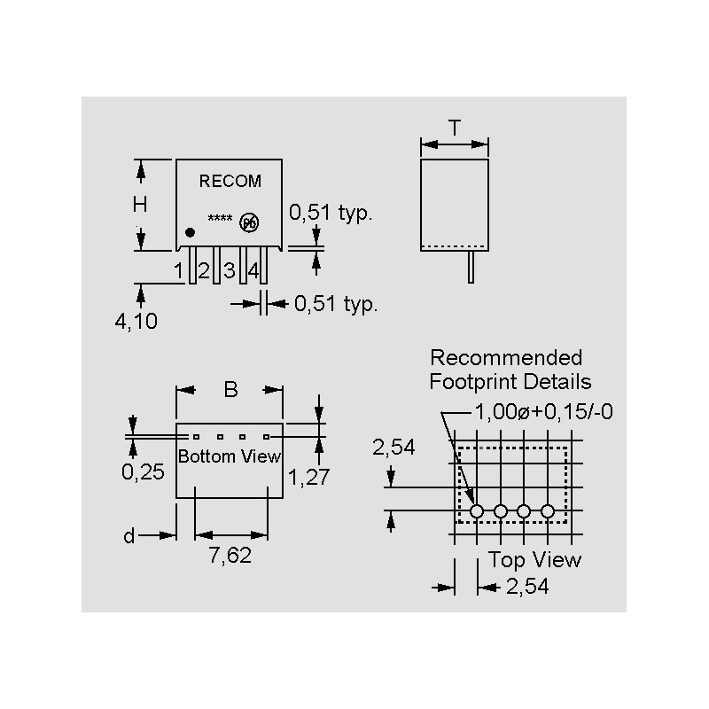 DC/DC converters with 1W in a SIL4 housing. These devices are suitable for direct PCB mounting and comply with EN60950-1, making them ideal for use in various applications. They have been designed to be protected against short circuit (RO_/P), ensuring the safety of both the device and its users. With their compact size and high level of protection, these DC/DC converters provide an efficient solution that can easily integrate into any system design without compromising on performance or reliability. We offer various types of this Recom series.