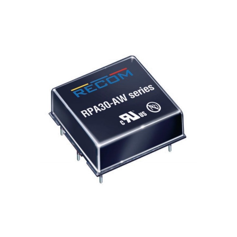 DC/DC converters in a compact 1x1 inch housing with an output power of 30W and withstand voltage (I/P-O/P) of 1,6kV DC are now available for direct PCB mounting. These devices come in two variations: single output (RPA30-_SAW) or dual output (RPA30-_DAW). They offer reliable protection against overvoltage, overload and short circuit to ensure optimal performance under various conditions. We offer the following types of this Recom series: RPA30-2405SAW/P, RPA30-2412SAW/P and RPA30-2415DAW/P.