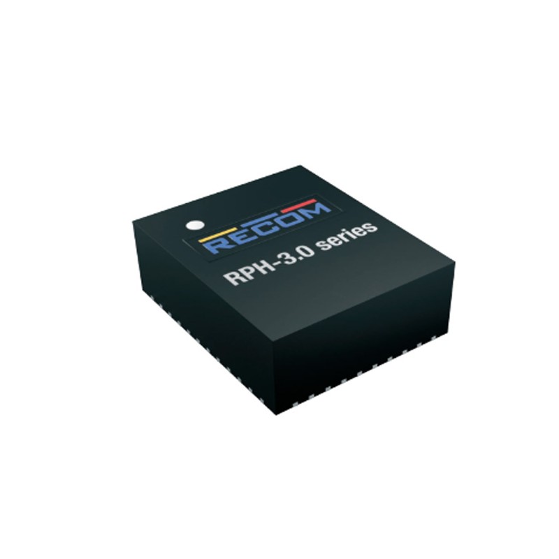 DC/DC converters in a QFN housing, with 3A and a programmable output voltage. These devices have a remote control, a DC-OK signal, and they are protected against overload, overtemperature, and short circuit. We offer the RPH-3.0-CT type of this Recom series.