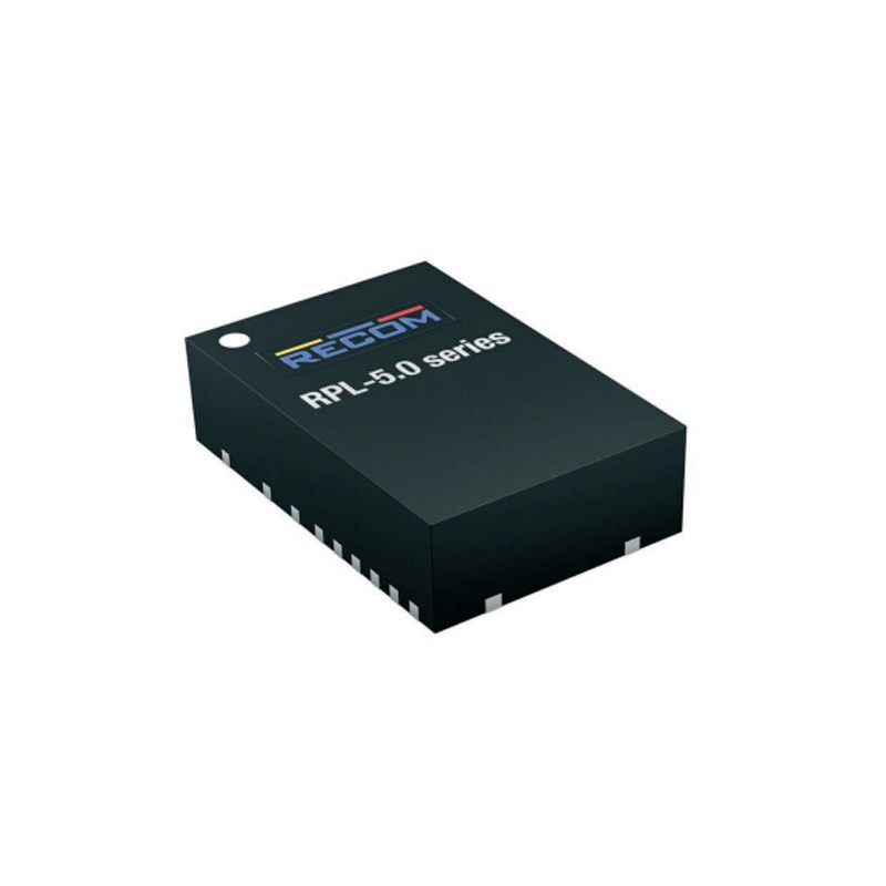 DC/DC switch regulators in a QFN housing with 5A and a programmable output voltage. This voltage converter has a remote control. It is protected against overload, overtemperature, and short circuit.This device can be installed directly on the PCB and it has a DC-OK signal. We offer the RPL-5.0-R type of this Recom series.