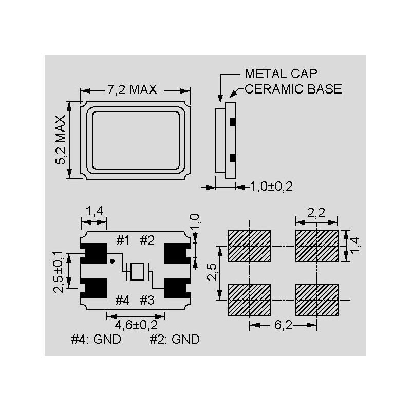 * frequency: 9.83 to 13.56 MHz * housing: 7.2x5.2x1.2mm * operating temperature: up -20 to +70°C * frequency tolerance (25°C): ±20ppm * frequency stability (up -20 to +70°C): ±30ppm * maximum shunt capacitance: 7pF * aging (25°C): ±3ppm/year