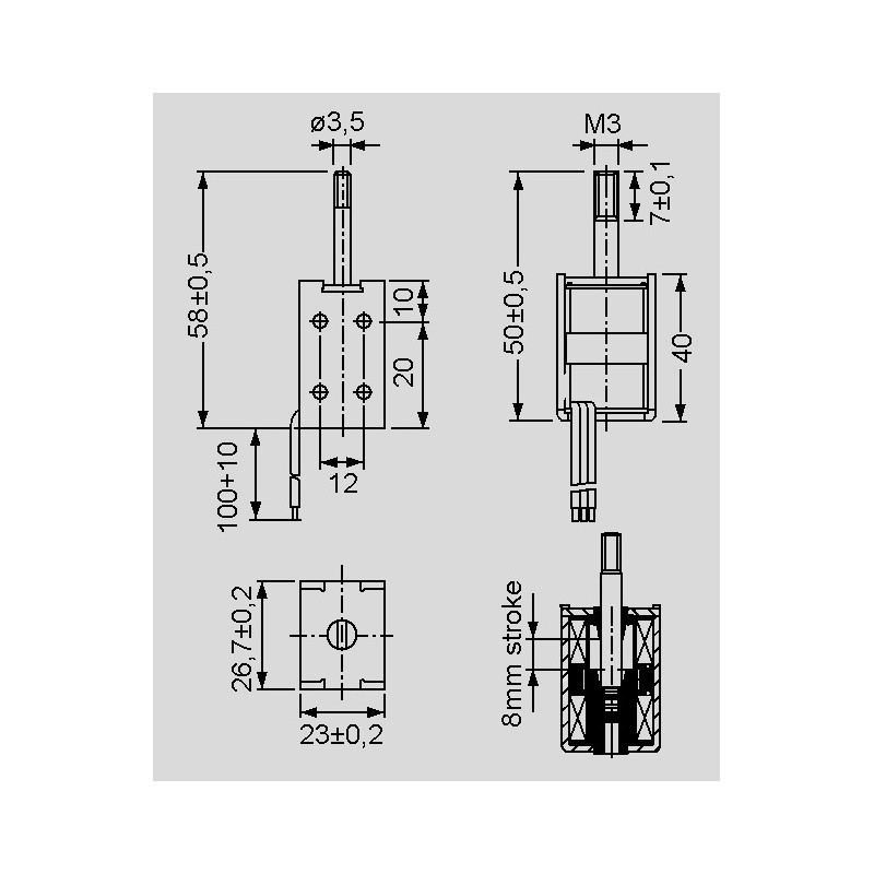 Bistable solenoids in an open-frame housing with a positively driven plunger. These framed magnets are lightweight and stable in the end positions. They have a stranded wire conection (100mm) and a stroke length of 6mm (ITS-LX-15_/ITS-LX-22_) resp. 8mm (ITS-LX-27_). We offer the following types of this Red Magnetics series: ITS-LX-1513-12VDC, ITS-LX-1513-24VDC, ITS-LX-2218-24VDC, ITS-LX-2723-12VDC and ITS-LX-2723-24VDC.