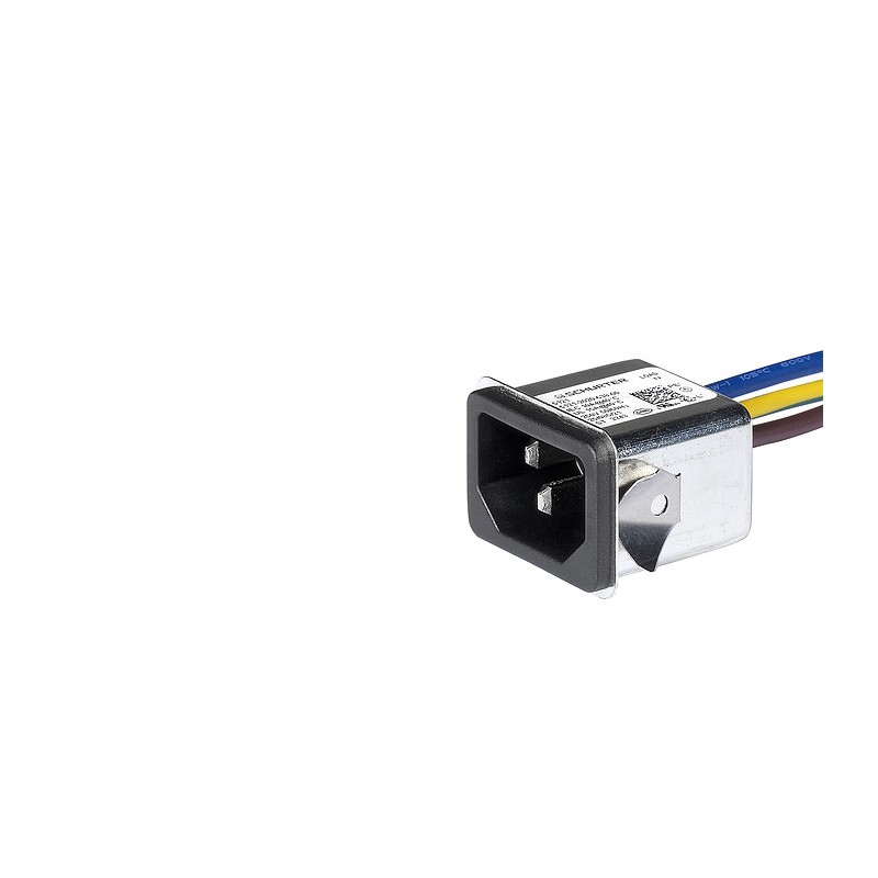 Radio frequency interference filters in a metal housing with an IEC C14 plug, a V-Lock cord retaining and protection class I. These devices are suitable for screw or snap-in mounting as well as for medical technology applications (3-132-195/3-132-199/3-132-197). They are optimally shielded and have a stranded wire connection (150mm). We offer the following types of this Schaffner series: 3-132-192, 3-132-198, 3-132-196, 3-132-195, 3-132-199 and 3-132-197.