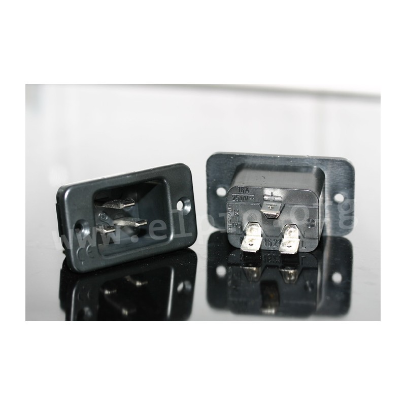 • no. of poles: 2 + PE• by Schurter• continuous current: 16A• pin temperature: 70°C• rated voltage: 250V AC• connection by flat cable plug 6.3mm• black• with longitudinal flange, distance between holes 42mm