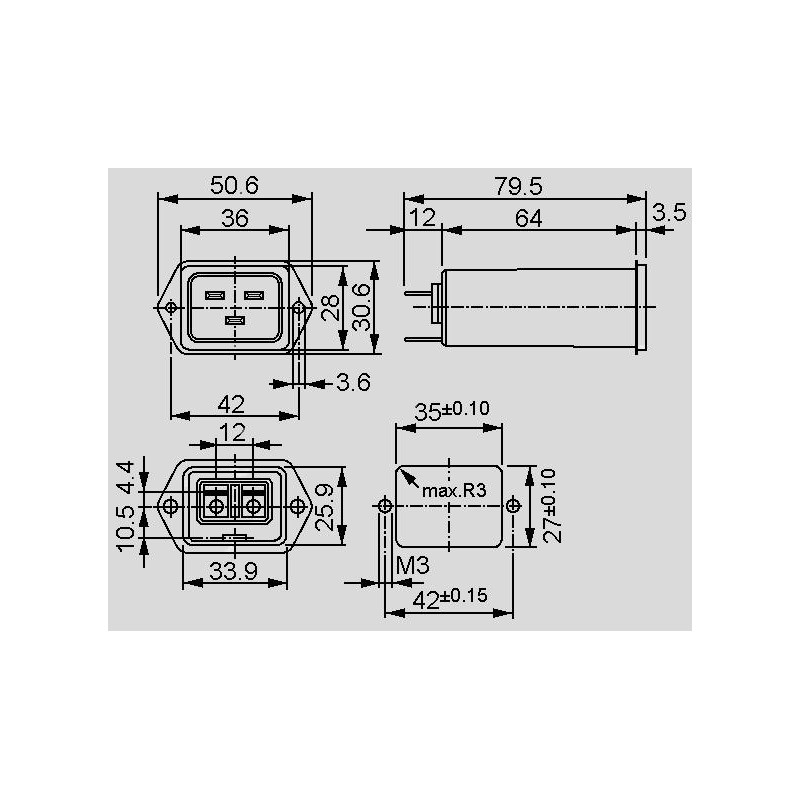 RFI filters in a metal housing with an IEC plug (C20), protection class I and a 6,3x0,8mm faston connector. These line filters have screw terminals and a good attenuation. We offer the type 5130.0000 of this Schurter series.
