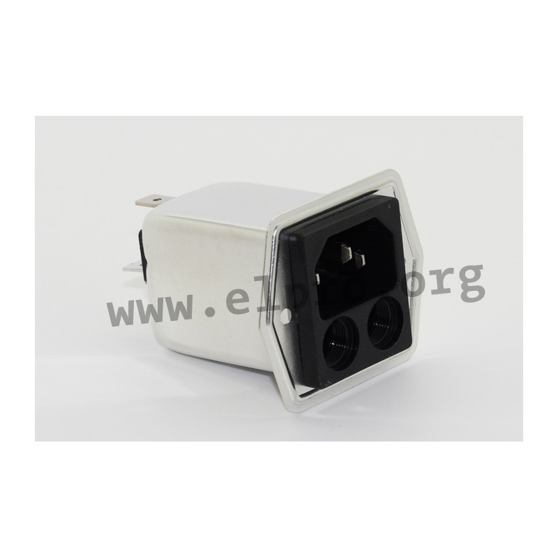 RFI filters in a metal housing (IP65) with a 2-pole fuse holder (5x20mm). These line filters have a faston plug terminal 6,3x0,8mm and are suitable for screw or rivet mounting. We offer the following types of this Schurter series: 5707.0201.312 and 5707.0801.312.