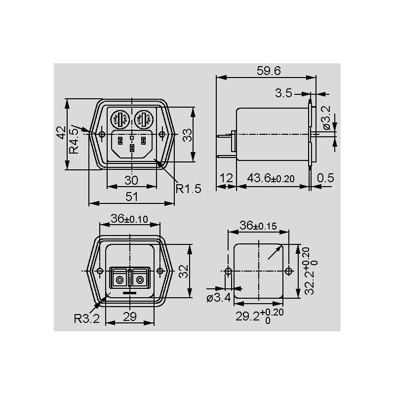 • filter built in a metal housing with integrated power line connector and 2-pole fuse holder