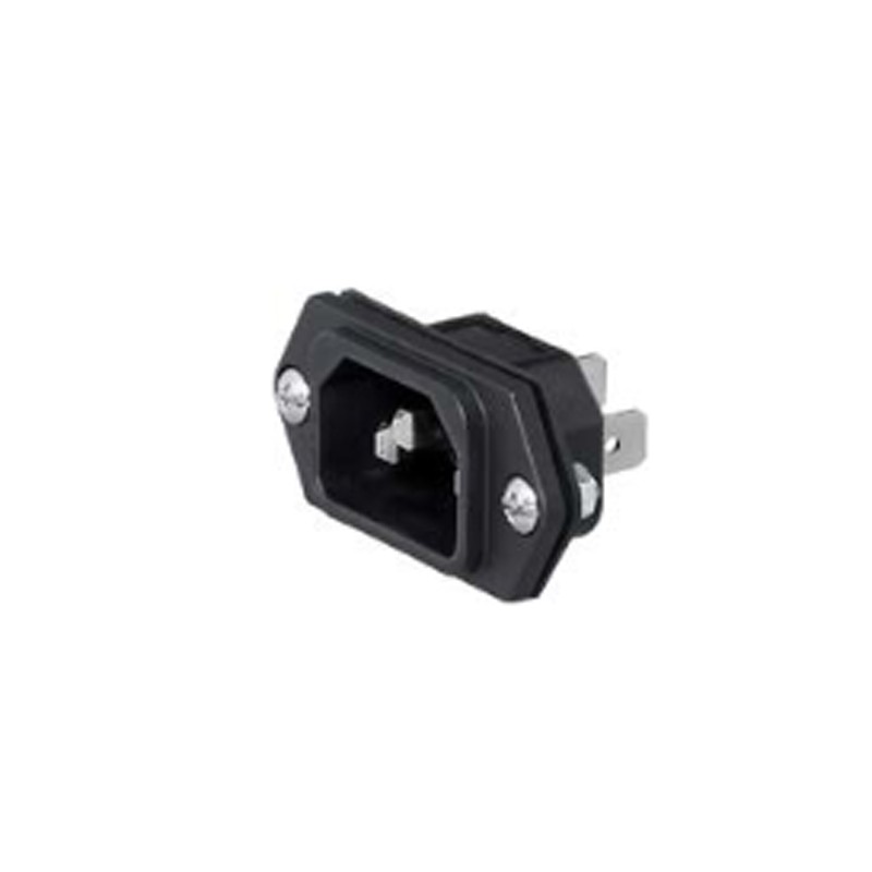IEC appliance inlets C14 with protection class I. These devices are suitable for panel mounting (screw-on) and have solder/quick connect terminals. They are suitable for a pin temperature of up to 70°C and are IP40 rated. We offer various types of this Schurter series.