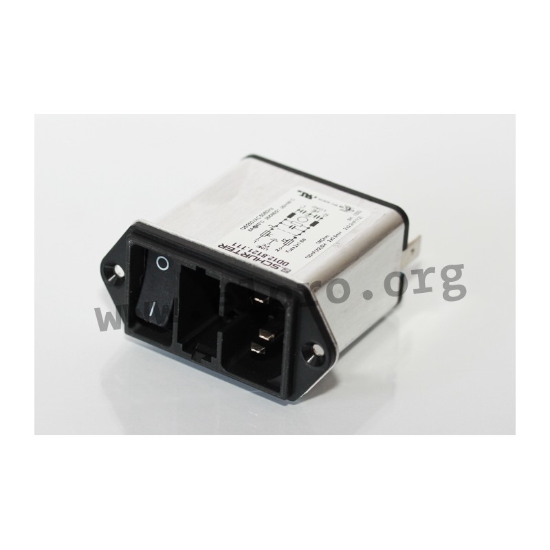 RFI filters in a metal housing with a 2-pole line switch, an IEC plug and a fuse holder for two 5x20mm fuses (fuse drawer must be ordered separately). These line filters have a tab terminal (6,3x0,8mm) and are suitable for screw mounting. We offer various types of this Schurter series.