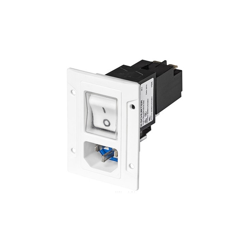 IEC appliance inlets C14 or C18 in black or white made of thermoplastic (UL94V-0) and with a circuit breaker TA-35, 2 poles. They are suitable for screw-on or snap-in mounting (3-107-924/3-109-713/3-109-716), and have a tab terminal 6,3x0,8mm. These inlets are compliant with IP40 resp. IP67 (3-108-454/3-109-719). We offer various types of this Schuter series.