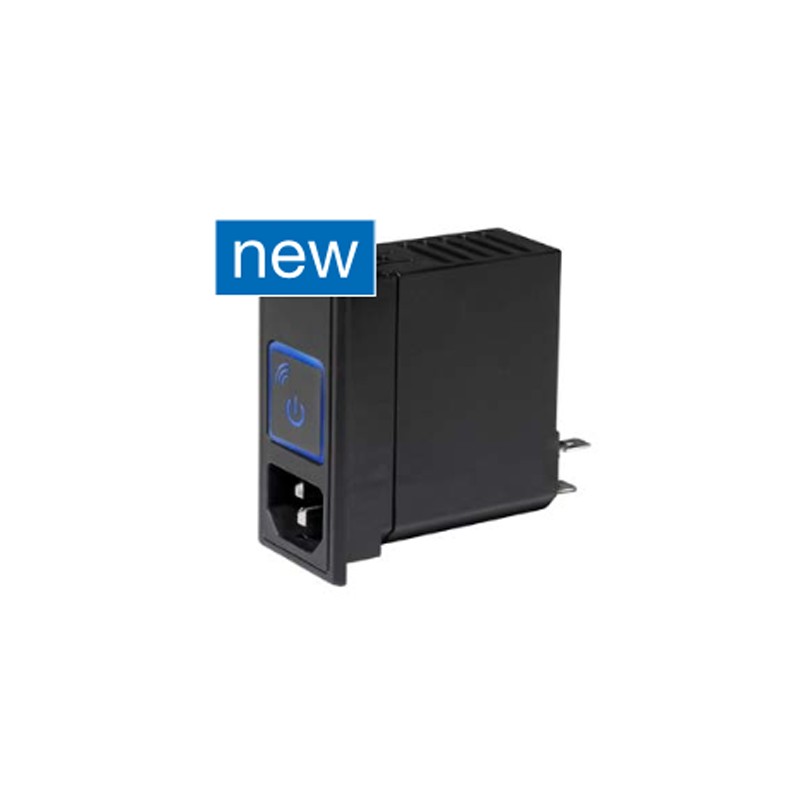 Smart IEC connectors (C14/IP40) with wifi, bluetooth and a built-in energy measurement sensor. These devices have a low standby energy consumption (<0,5W) and are compatible with V-Lock cord retention. They have a C13 appliance outlet with a permanently connected cable (approx. 80cm) and a button with an RGB backlight. We offer the type 3-137-396 and 3-137-412 of this Schurter series.