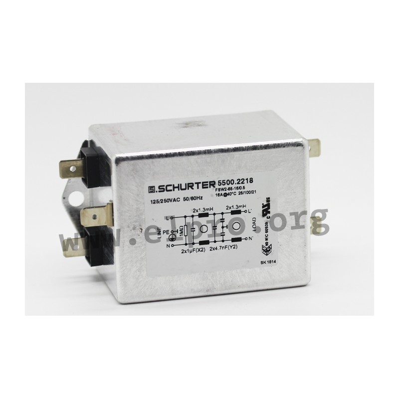 Two-stage AC-filters with a high attenuation. These line-filters are protected against interference voltage from the mains and are intended for industrial applications such as: frequency converters, stepper motor drives, UPS-systems, inverters. They are designed for increased requirements and suited for use in switching power supplies as well as devices according to IEC/UL 6095. Our product range contains the following types of this series by Schurter: 5500.2058, 5500.2060, 5500.2062, 5500.2218.